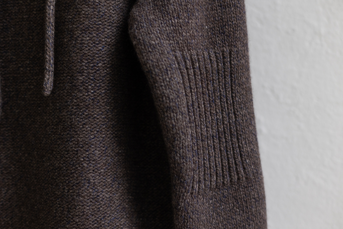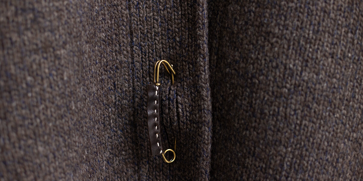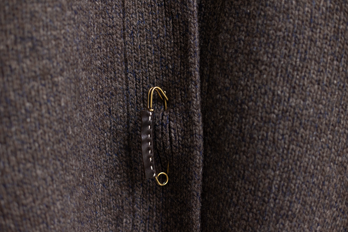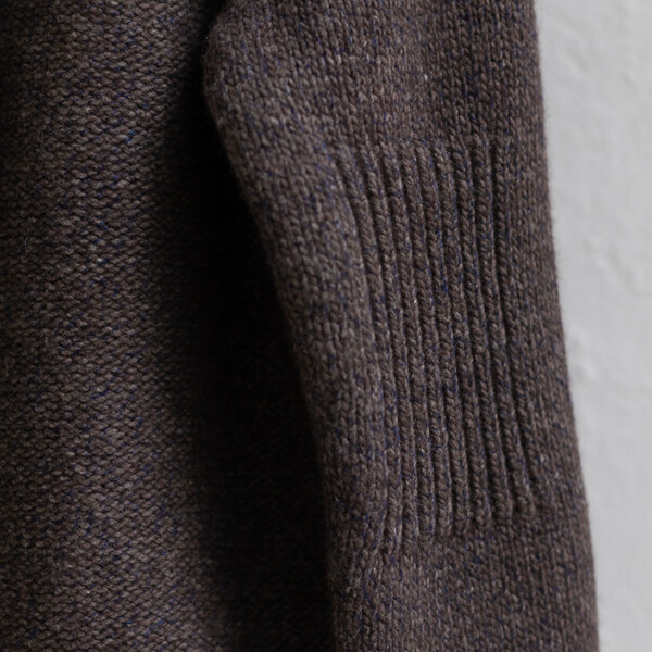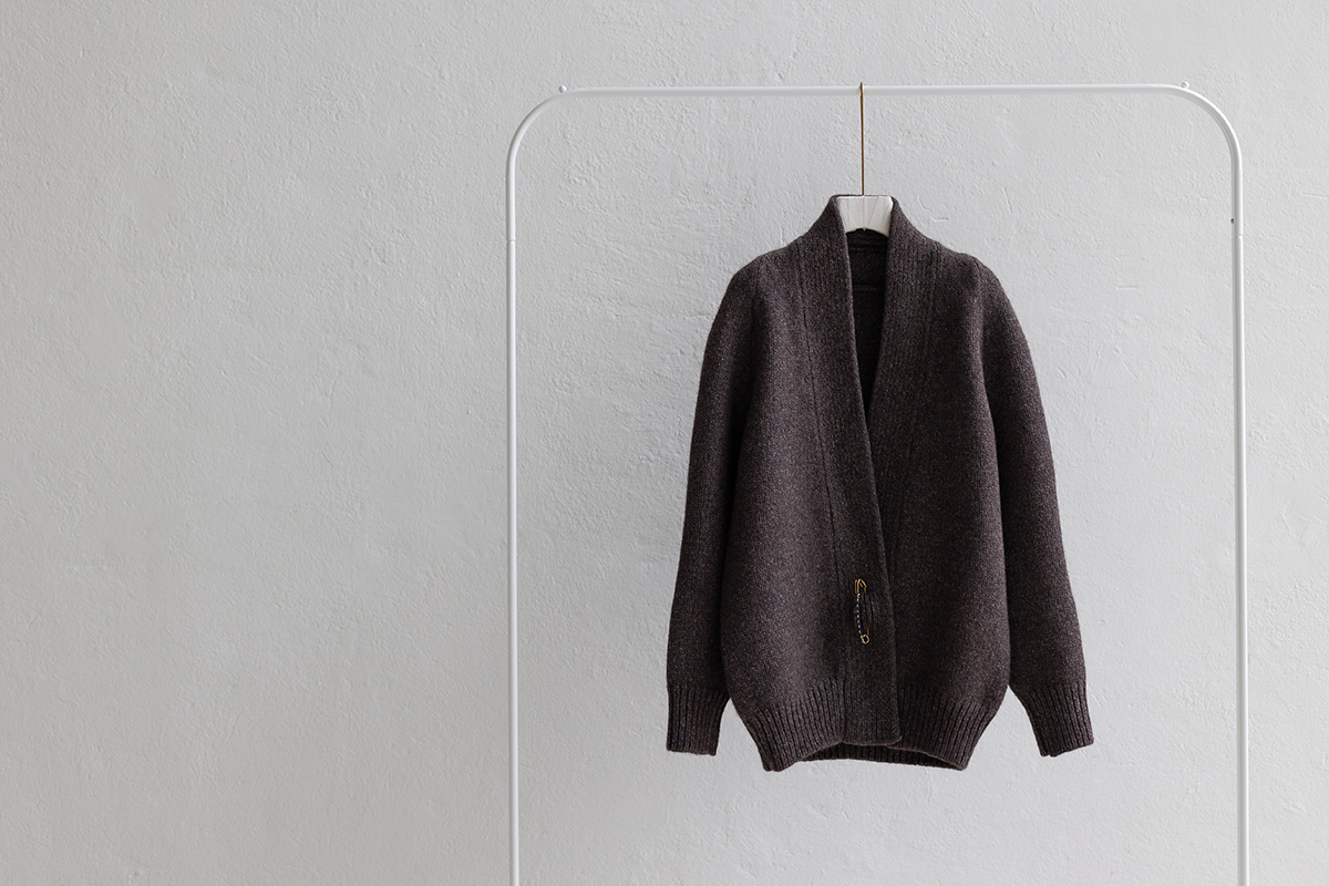 保温性と防水性に優れ、防寒性に優れるとも言われるヤクの自然なブラウンカラーを生かした色合いに、柔らかなカシミヤのネイビーカラーがブレンドされた杢糸で編み上げたヤクシリーズ。3ゲージカーディガンSARANは、アウターとしても着ていただけます。