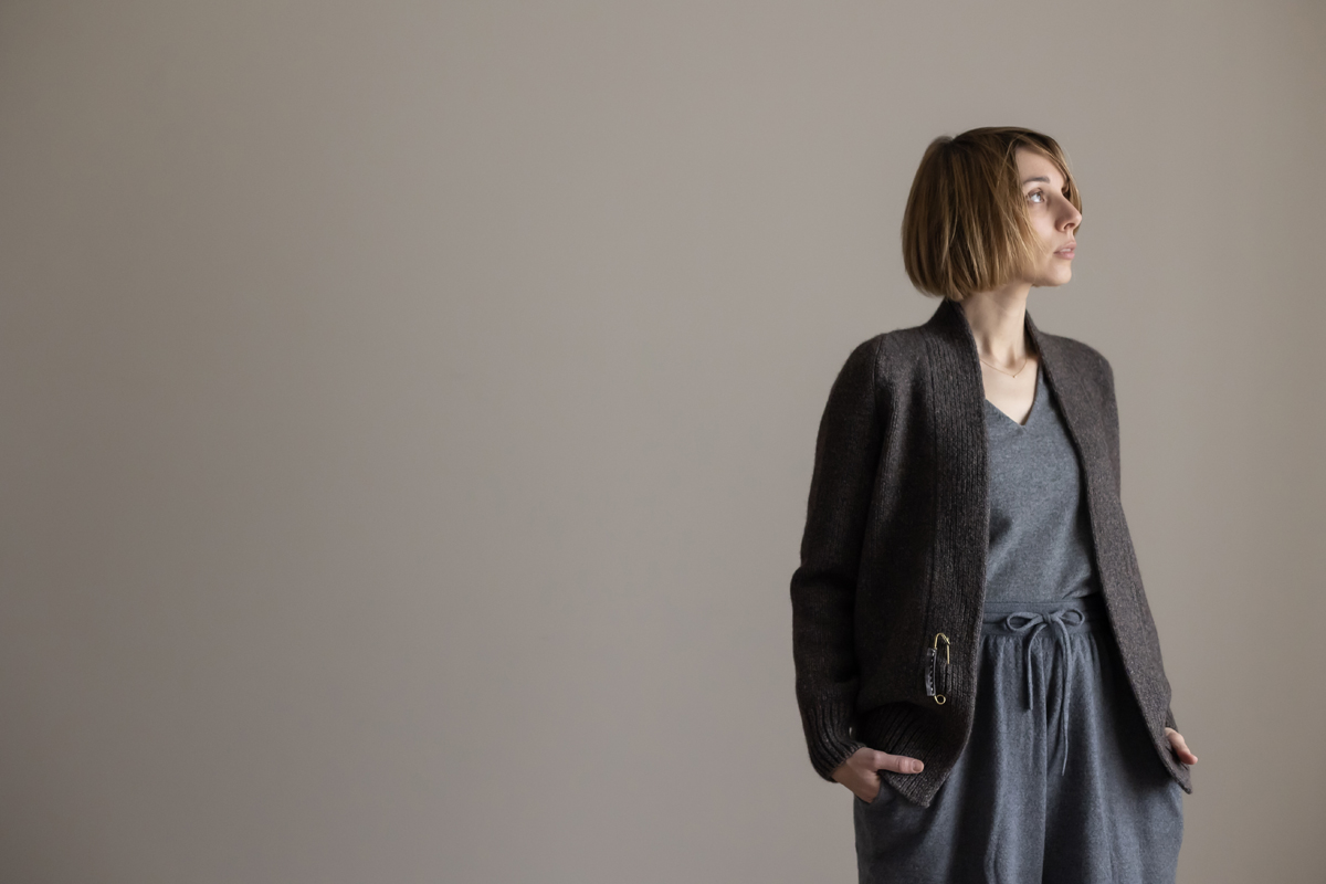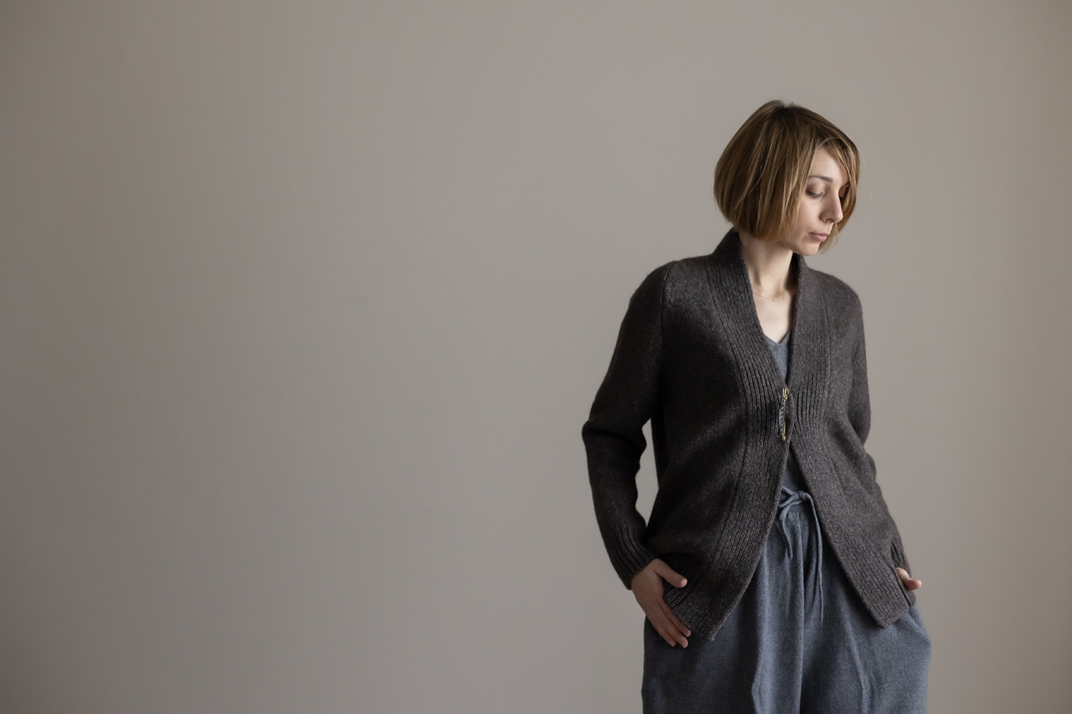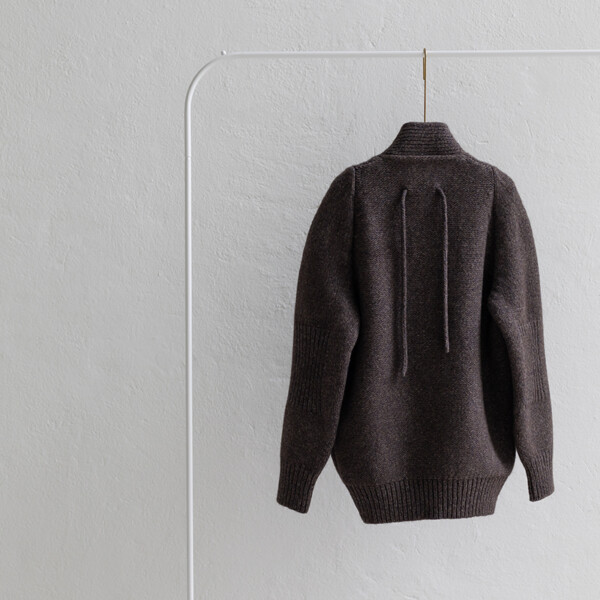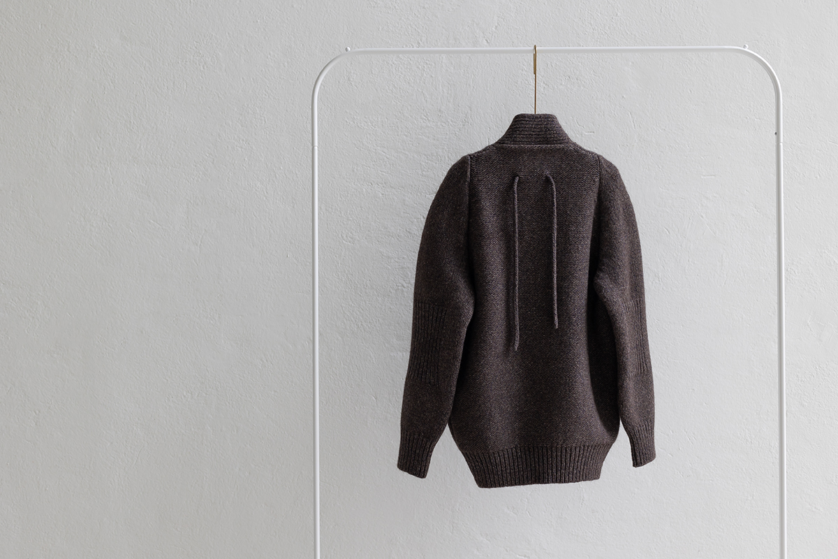 保温性と防水性に優れ、防寒性に優れるとも言われるヤクの自然なブラウンカラーを生かした色合いに、柔らかなカシミヤのネイビーカラーがブレンドされた杢糸で編み上げたヤクシリーズ。3ゲージカーディガンSARANは、アウターとしても着ていただけます。